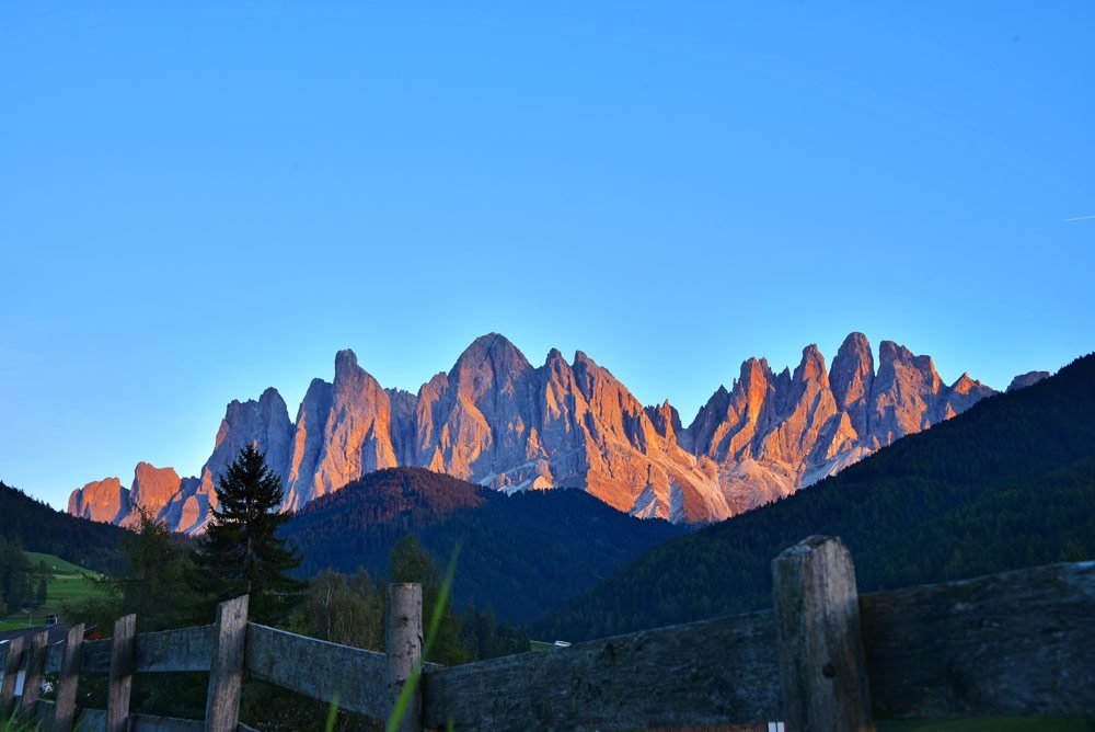 Seit 2009 gehören die eindrucksvollen Felsformationen der Dolomiten zum Weltnaturerbe der UNESCO. Ein besonders imposantes Gebiet dieser Alpenregion in Südtirol erwartet Sie in Villnöss. Die schroffen, scharfkantigen Felsen der Geislergruppe sind ein markantes Wahrzeichen der Dolomiten. Die Sonne zaubert in den Sommermonaten wechselnde Lichtreflexe auf den hellen Kalkstein. Bis auf eine Höhe von mehr als 3.000 Metern ragen die markanten Felstürme über Ihrem Urlaubsdomizil und dem gesamten Gemeindegebiet im Villnösstal auf. Im naheliegenden Naturpark Puez Geisler erschließt sich Ihnen die ganze Schönheit der Region beim Bergwandern in den Dolomiten.